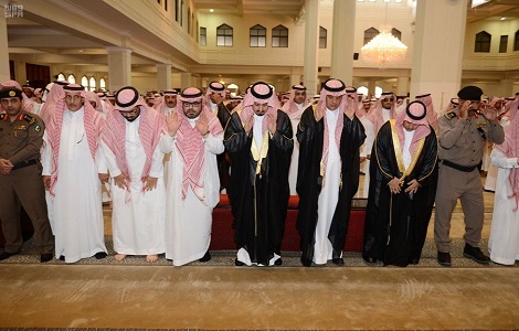 أدى الصلاة مع سموه وكيل إمارة منطقة عسير المهندس خالد بن عبدالله الربيعة .