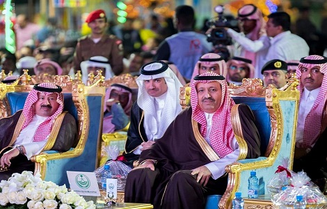 ولدى وصول سموه مقر المهرجان قام بقص الشريط إذاناً بافتتاحه وإطلاق فعالياته التي تستمر ثلاثة أشهر، ثم تجول في أرجاء المهرجان المتضمن معرضًا للدوائر الحكومية وأركانًا تبرز الجانب التراثي وأخرى للتسوق والترفيه ،إلى جانب صالة الإضاءة والصوت.