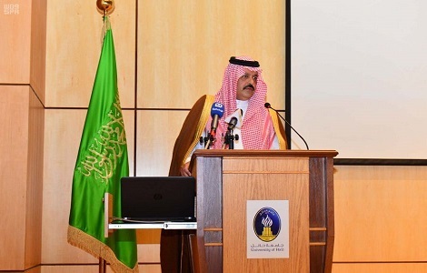 وألقى سمو أمير منطقة حائل، خلال الحفل الخطابي المعد بهذه المناسبة، كلمة قدم فيها شكره لإدارة الجامعة ومنسوبيها على المبادرات المستمرة للجامعة وقال "إن أطروحة الكتاب هي البوابة الأساسية لاحترام المجتمعات مؤكداً أهمية توسيع دائرة الثقافة الرقمية التي أصبحت متاحة للجميع."