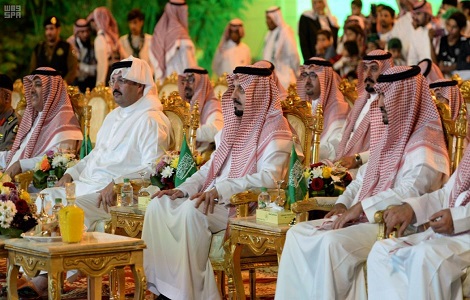 ثم بدئ الحفل بالسلام الملكي ، تلاه كلمة ممثل هيئة الترفيه المهندس فيصل المهيري قدم فيها الشكر لسمو أمير المنطقة على متابعته الحثيثة وتوجيهات المستمرة لإنجاح الفعالية ، مشيراً إلى أنه تم تنظيم الفعالية على مدى ثلاثة أيام وبحضور أكثر من 200 ألف زائر فاق جميع التوقعات مما يدل على التفاعل الكبير من أبناء المنطقة لمثل هذه الفعاليات لتحقق أرقاماً قياسية على مستوى الحضور في فعاليات هيئة الترفيه .