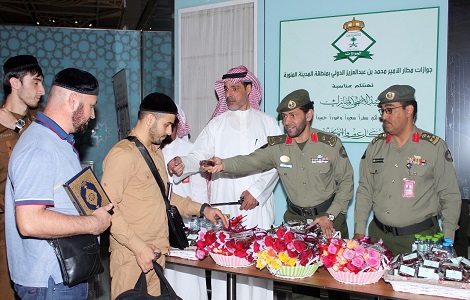 وذلك بحضور مدير جوازات منطقة المدينة المنورة اللواء الدكتور خالد بن محمد الهويش ومدير جوازات مطار الأمير محمد بن عبدالعزيز العميد بدر معيوف المطيري، حيث تم توزيع باقات الورد والحلوى مصحوبة بالمباركة لهم والتهنئة لإتمامهم الحج، مما كان له الأثر الأكبر على محيا ضيوف بيت الله الحرام وتأتي هذه الجهود بتوجيه ومتابعة مستمرة من سعادة مدير عام الجوازات اللواء/ سليمان بن عبدالعزيز اليحيى.